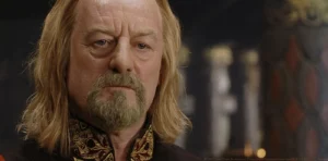 Possiamo star certi che saranno senz’altro i panni di re Théoden quelli per cui Bernard Hill verrà ricordato nella storia del cinema. Un personaggio secondario ma importantissimo, al quale la sceneggiatura assegna alcuni monologhi di grande livello. Oltre al già citato discorso agli Eorlingas davanti a Minas Tirith, bisogna ricordare anche la scena della vestizione del re prima della battaglia del Fosso di Helm. Hill tocca lì un apice interpretativo, con la telecamera a una spanna dal viso e la luce alle spalle, mentre dialoga con il fido Gamling, ma in realtà con se stesso, assalito dai dubbi sull’essere all’altezza del proprio ruolo e sulla decadenza del proprio popolo: