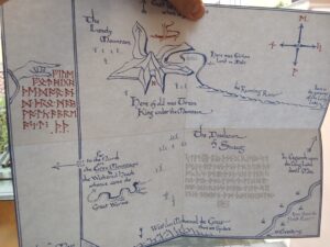 Leggere della mappa in inglese mi ha deluso! Anche se capisco la scelta. Il motivo è presto detto. Lessi lo hobbit da bambino, e mi ricordo ancora di come cercai di scoprire l’alfabeto runico grazie alle informazioni della mappa, scrivendo le corrispondenze su di un foglio. E da quando ho letto di questa nuova edizione, pregustavo già di prenderla anche per fare lo stesso gioco con il mio bambino! Ma non sarei stato certo all’altezza di farlo da bambino con mappa e spiegazioni in inglese, e sarà molto più difficile farlo insieme ad un bambino con questa edizione. Forse dovro’ prendere la vecchia dal nonno… Insomma, se si considera lo hobbit un libro (anche) per bambini, era forse meglio tradurla? Immagino questione già discussa, ma mi sembra interessante parlarne.
