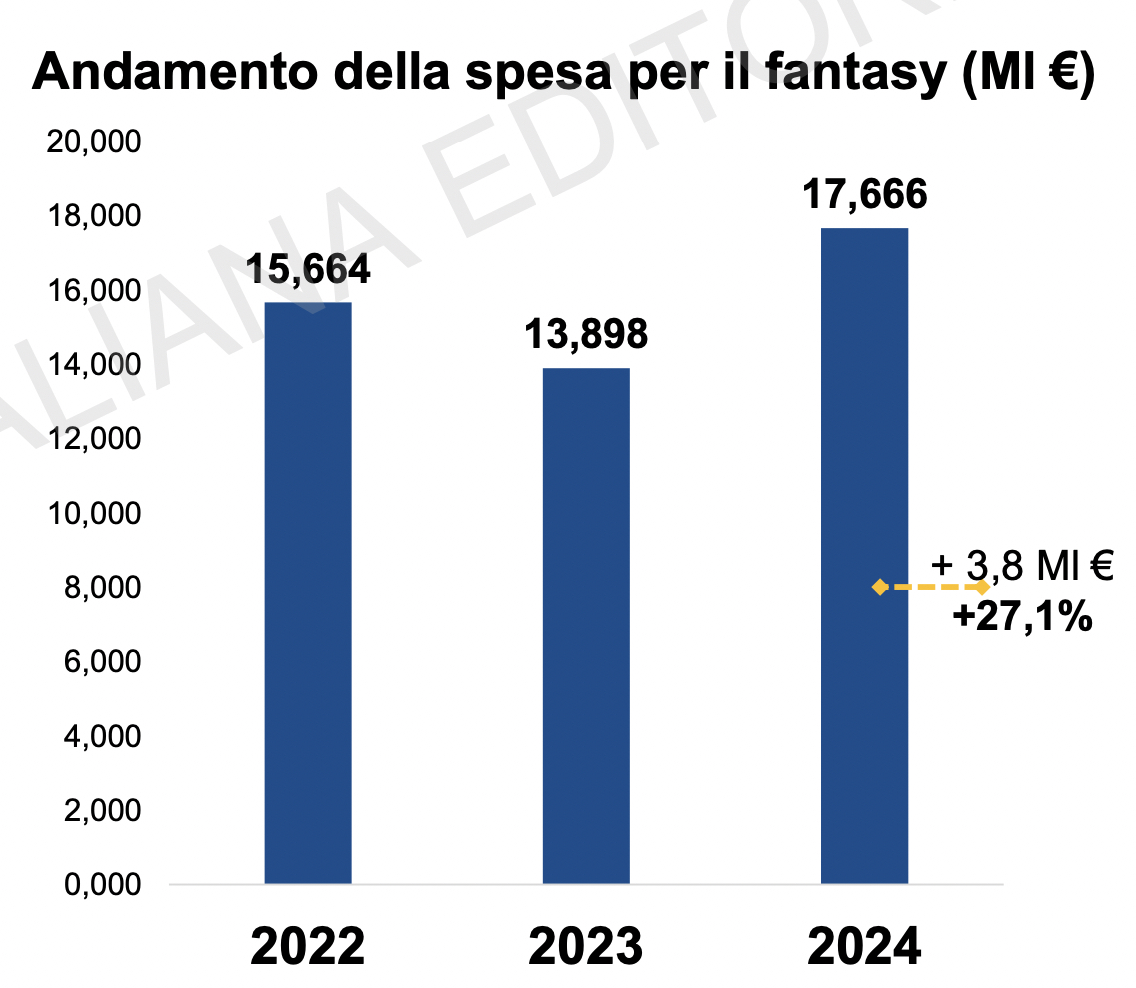 L’AIE dichiara che «Il fantasy è uno dei generi che ha mostrato nel 2024 un andamento positivo». Sono aumentati i titoli ma, soprattutto, sono aumentati gli acquisti dei lettori. È importante sottolineare che i dati sono probabilmente sottostimati perché «non sono comprese le vendite effettuate al di fuori dei canali rappresentati dal panel NielsenlQ-GfK, ossia quelle in librerie specializzate, in occasione di fiere, vendite dirette, vendite temporanee, in stazioni di servizio, grandi magazzini, giocherie, cartolerie, edicole…». Questi luoghi rappresentano importanti occasioni di movimento di libri di genere fantastico, pensiamo solo a quante manifestazioni e fiere specializzate si tengono annualmente in Italia, da Montelago a FantastikA a Lucca Comics and Games, solo per citare alcune di quelle che vedono anche la partecipazione di AIST.
