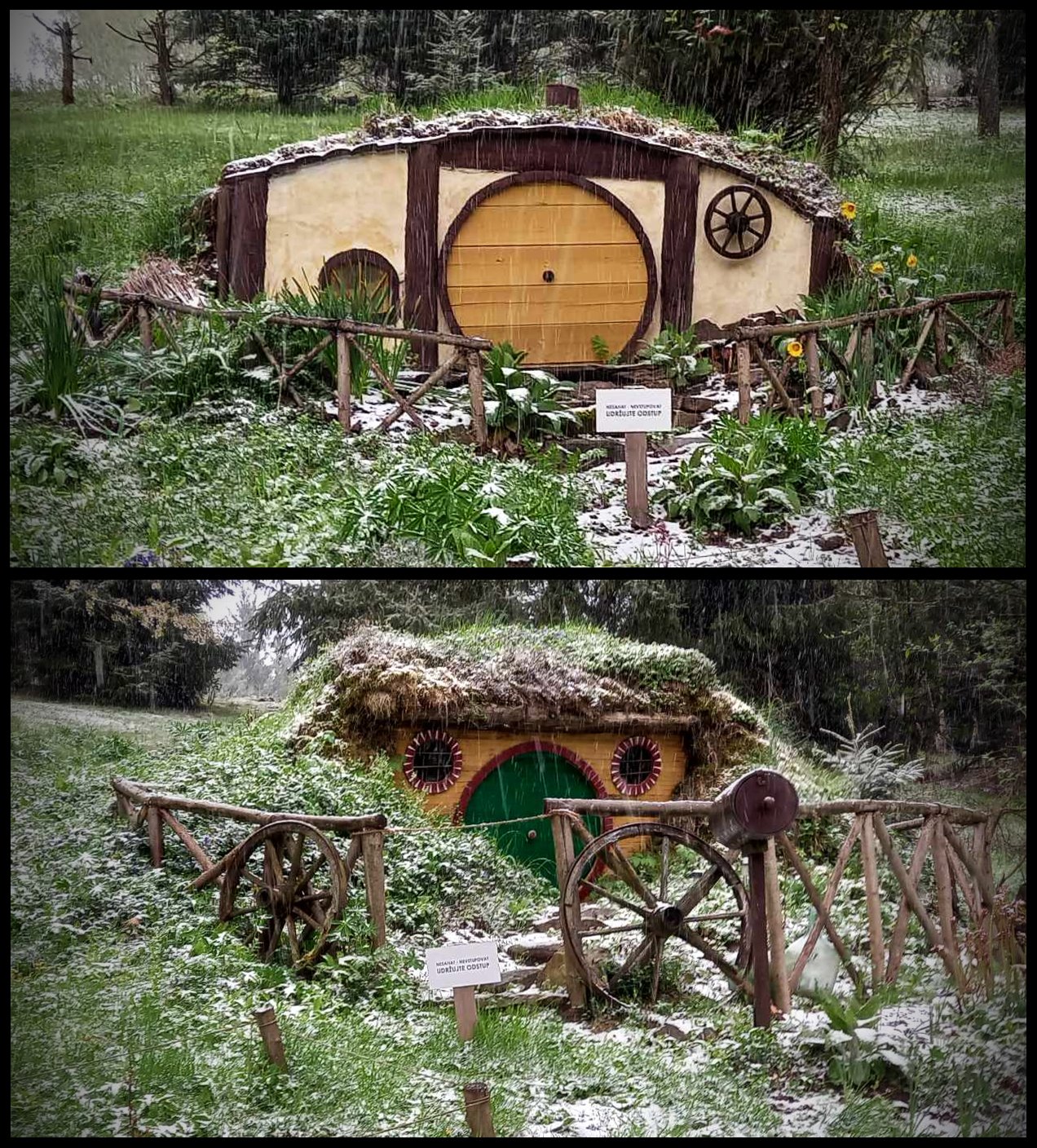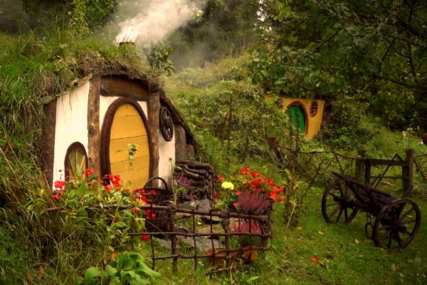 Nel tempo, quello che era solo un progetto personale si è evoluto: ora, sulla cima di una ripida collina, ci sono tre buche hobbit, ispirate alle illustrazioni di John Howe e alle scenografie di Peter Jackson. Sono repliche in scala ridotta, delle vere e proprie maxi-miniature in stile Weta, quindi non accessibili, ma esteticamente perfette.