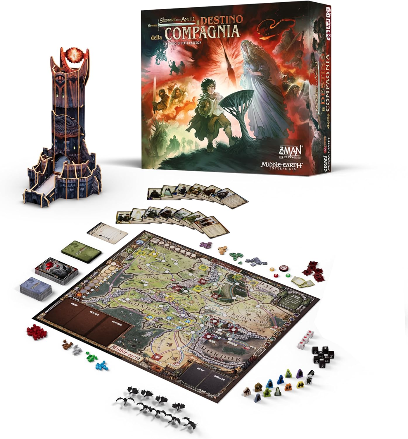 Uscito quest’estate e già annunciato sul nostro sito web, il nuovissimo gioco della serie Pandemic System ha posato il suo sguardo sul mondo immaginato da J.R.R. Tolkien. Il Signore degli Anelli: Il Destino della Compagnia ha richiesto ben tre anni di sviluppo, ma a quanto pare le cose sono state fatte bene. Il gioco da tavolo combina il collaudato sistema Pandemic con il mondo della Terra di Mezzo, creando un gioco cooperativo che richiede sia strategia che lavoro di squadra. I giocatori assumono il ruolo di eroi per difendere i rifugi della Terra di Mezzo dall’avanzata delle truppe dell’Ombra, aiutando Frodo a sfuggire ai Nazgûl durante il suo viaggio verso il Monte Fato per distruggere l’Unico Anello. Il gioco da tavolo è pensato per un numero di giocatori compreso tra uno e cinque. Ogni giocatore impersona due personaggi della Terra di Mezzo che, usando le loro abilità speciali, collaborano per proteggere Frodo e la Compagnia. Con 13 personaggi giocabili, 14 carte evento e 24 obiettivi, il gioco offre un’enorme varietà di esperienze di gioco. Il gioco include anche una Torre dei Dadi Barad-dûr costruibile da 28 cm, miniature Nazgûl, illustrazioni originali dei personaggi e molto altro.