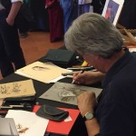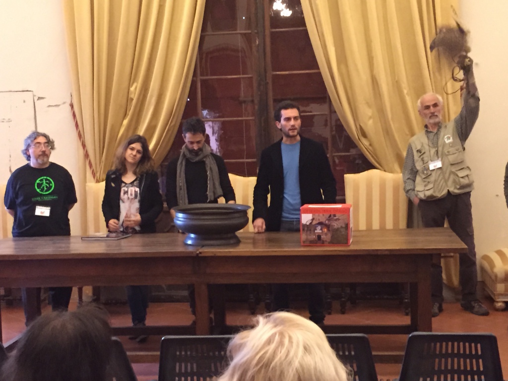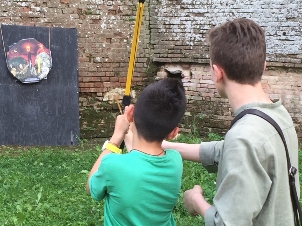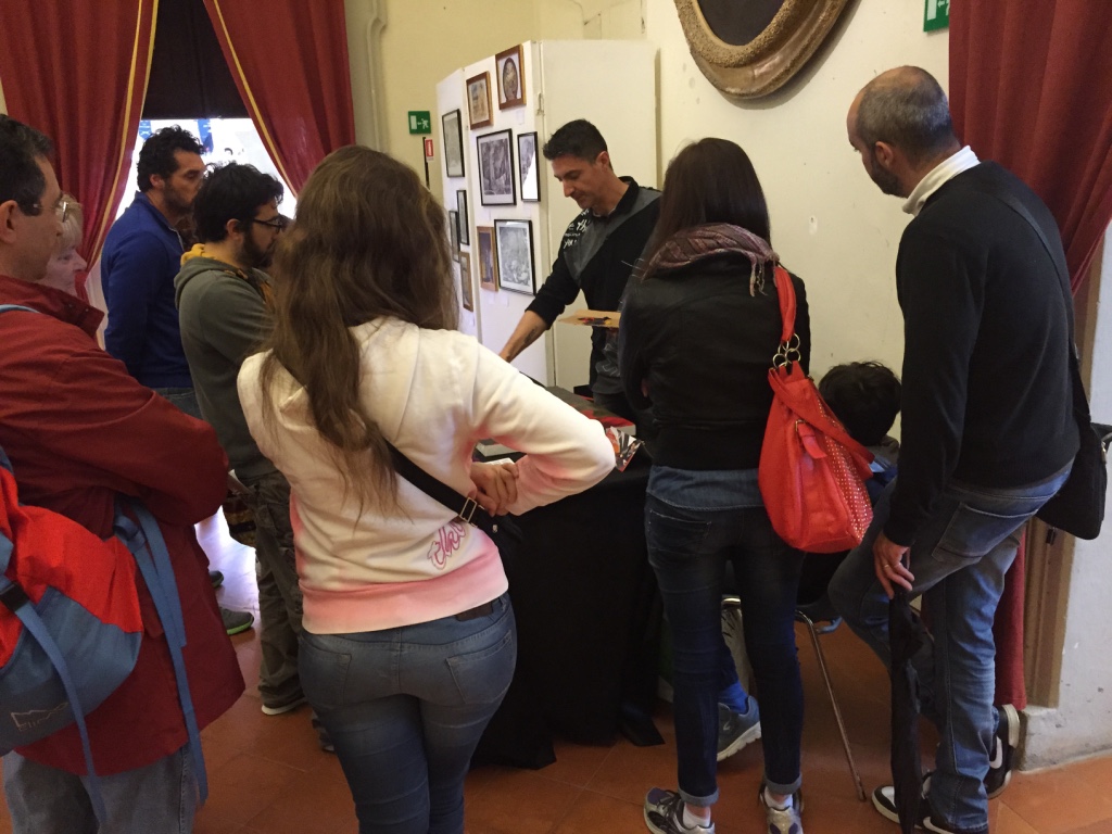 «Libri, libri, libri», chiedeva la gente nella corte centrale. La novità di quest’anno sono stati i tantissimi autografi richiesti ai sorpresi autori, novelli rockstar di Fantastika 2015. Svuotate anche le scatole con le t-shirt realizzate dall’Associazione, fortuna non tutte perché non si attendeva un successo anche delle magliette ricordo. La fortuna invece non ha aiutato nessuno di coloro che si son voluti cimentare nel tiro al bersaglio dello stand, vero e proprio punto d’onore per chi voleva abbattere Sauron! Per tutto questo e per tutto il resto, non si può che esser grati: a Norbert per la depressione post-evento; a Manuele per quella durante l’evento; a Lorenzo per la bontà dei panini crudo e formaggio; a Simona per il disegno del gufo reale; all’altro Lorenzo per aver sostituito il bersaglio durante il tiro di Dario e a quest’ultimo per averlo sbagliato;