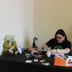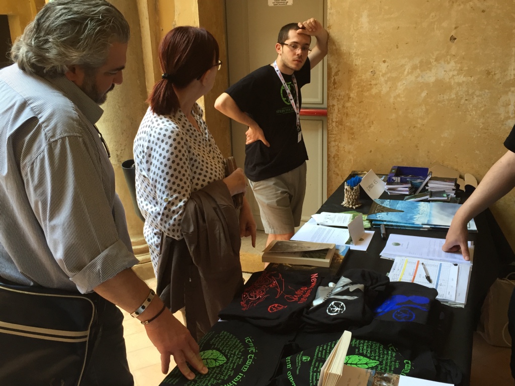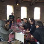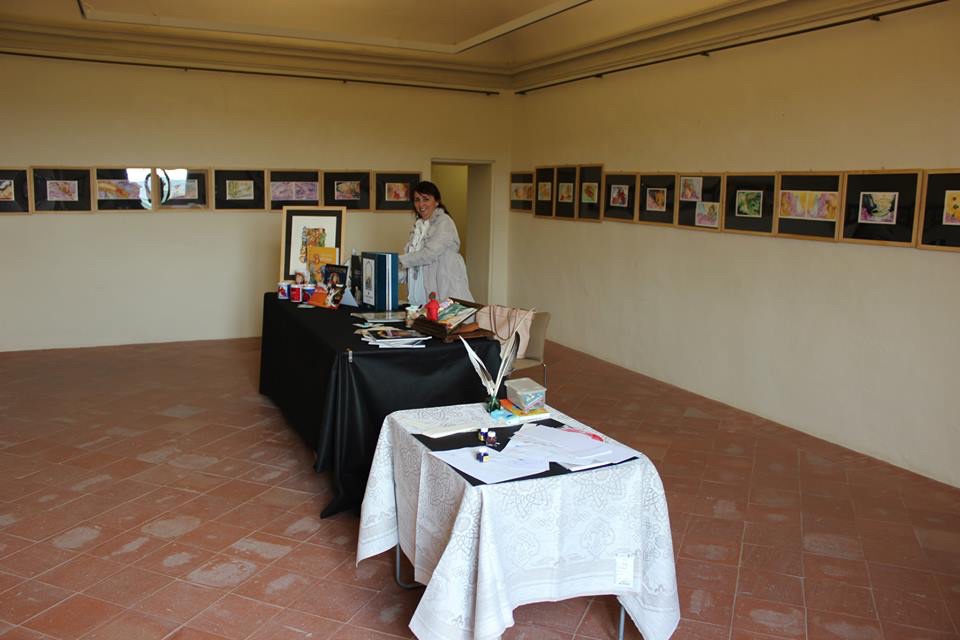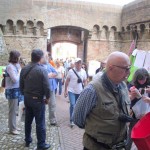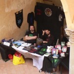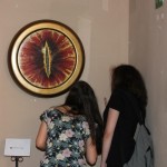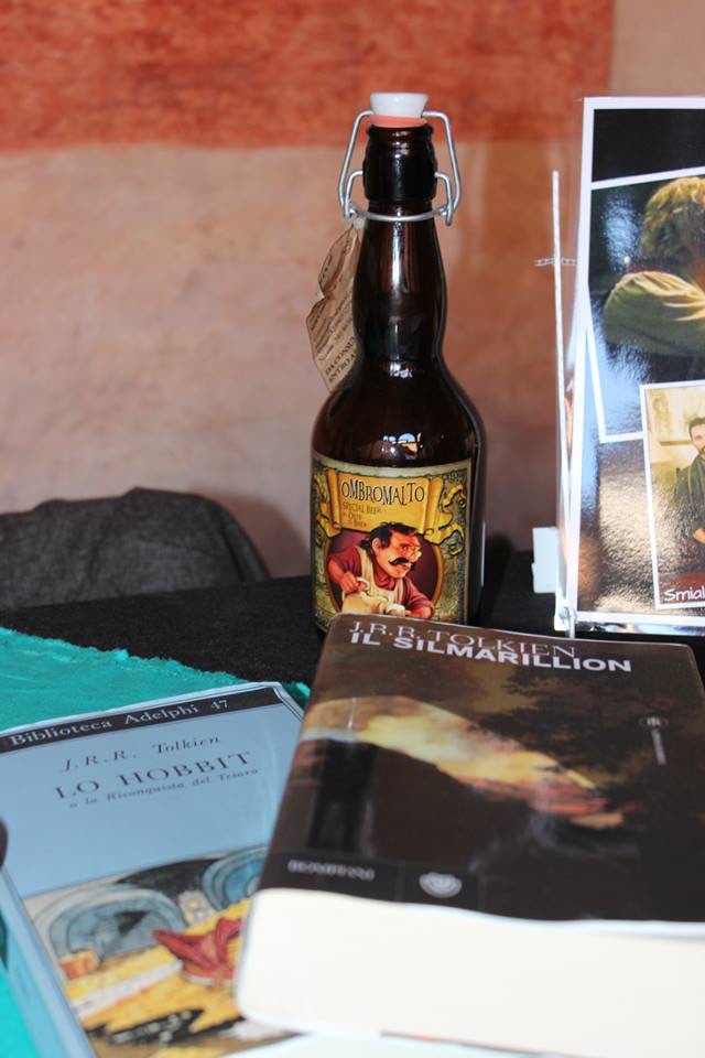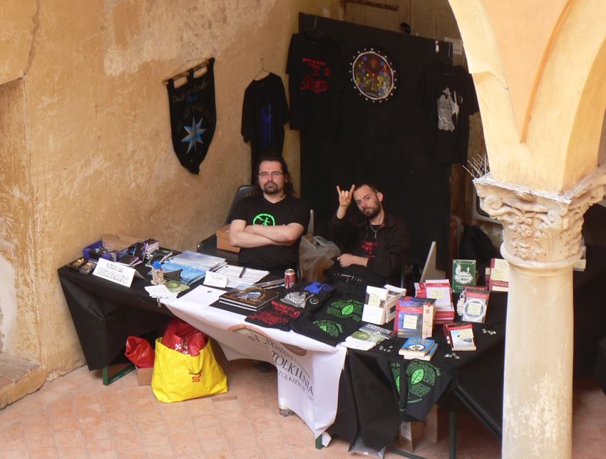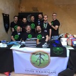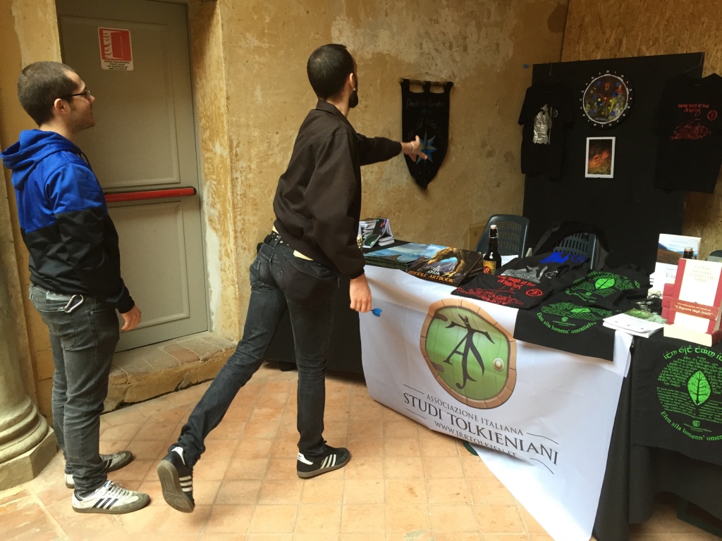L’incessante pioggia di sabato mattina non ha fermato gli appassionati di J.R.R. Tolkien e il gruppone dei soci dell’AisT, che quasi al completo sono giunti da tutta Italia per far funzionare la “macchina” della manifestazione. Sedie e tavoli son stati spostati, i biglietti son stati strappati, quadri e statue sono state vigilate, oltre alle mille piccole incombenze che son sorte durante i due giorni dell’evento. Ma il cuore pulsante per i soci è stato lo stand, presidiato come non mai, oltre alle altre postazioni strategiche nei torrioni, in pinacoteca, nella sala grande e nelle camere nobiliari. I soci dell’AisT si son contraddistinti per la gentilezza e la professionalità, ce n’erano un po’ ovunque in Rocca con le loro magliette col nuovo logo verde brillante! Lo stand è stato però il centro delle attività anche perché preso letteralmente d’assalto dagli appassionati.