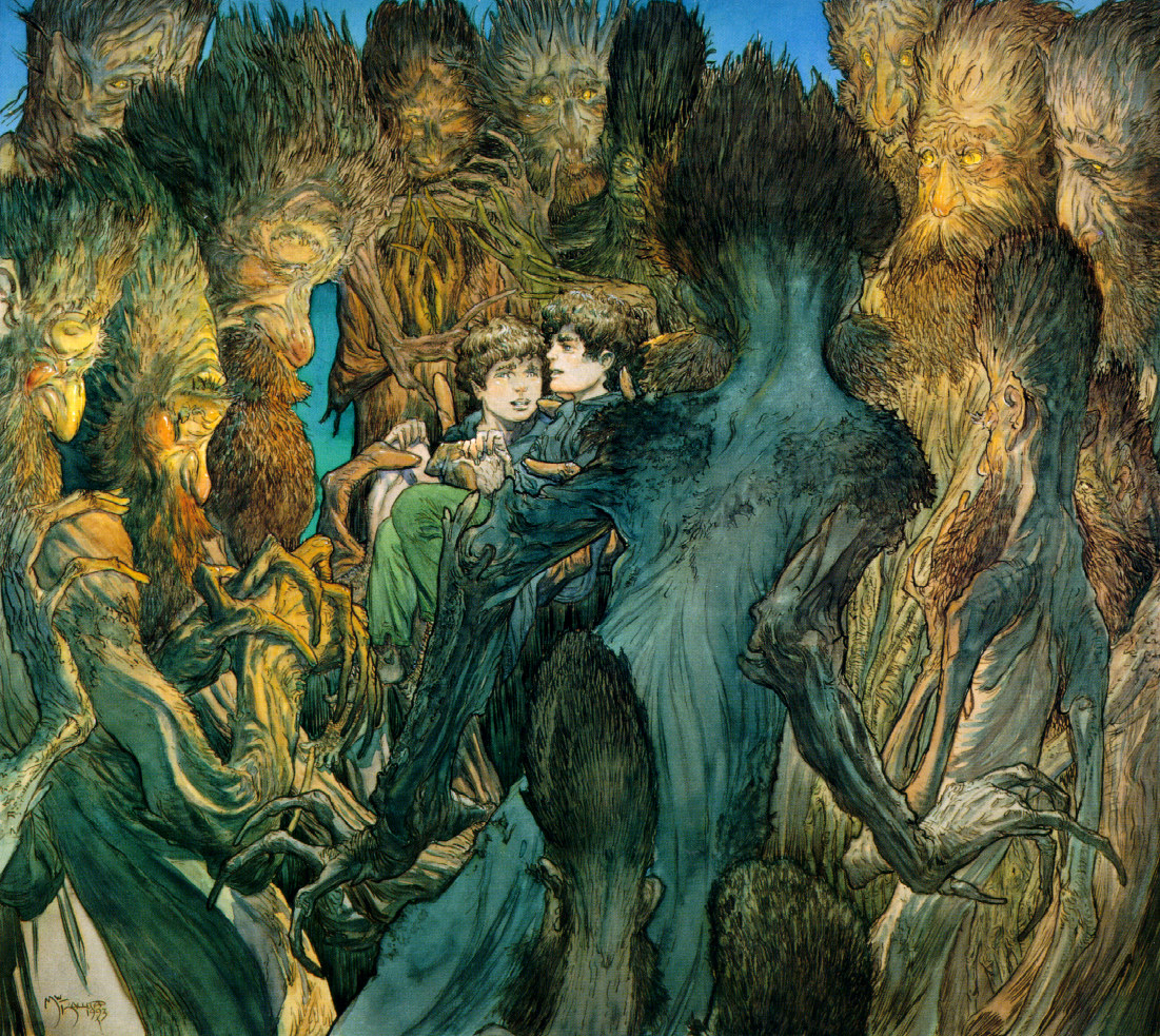 Una sera di primavera del cinquantesimo anno di Frodo, Sam Gamgee e Ted Sabbioso sedevano alla Locanda del Drago Verde di Lungacque e discorrevano così: «Ma che te ne pare di questi Uomini-alberi, che si potrebbero chiamare giganti? Un sacco di gente insiste nel dire di averne visto uno più alto di un albero, al di là delle Brughiere del Nord, poco tempo fa».