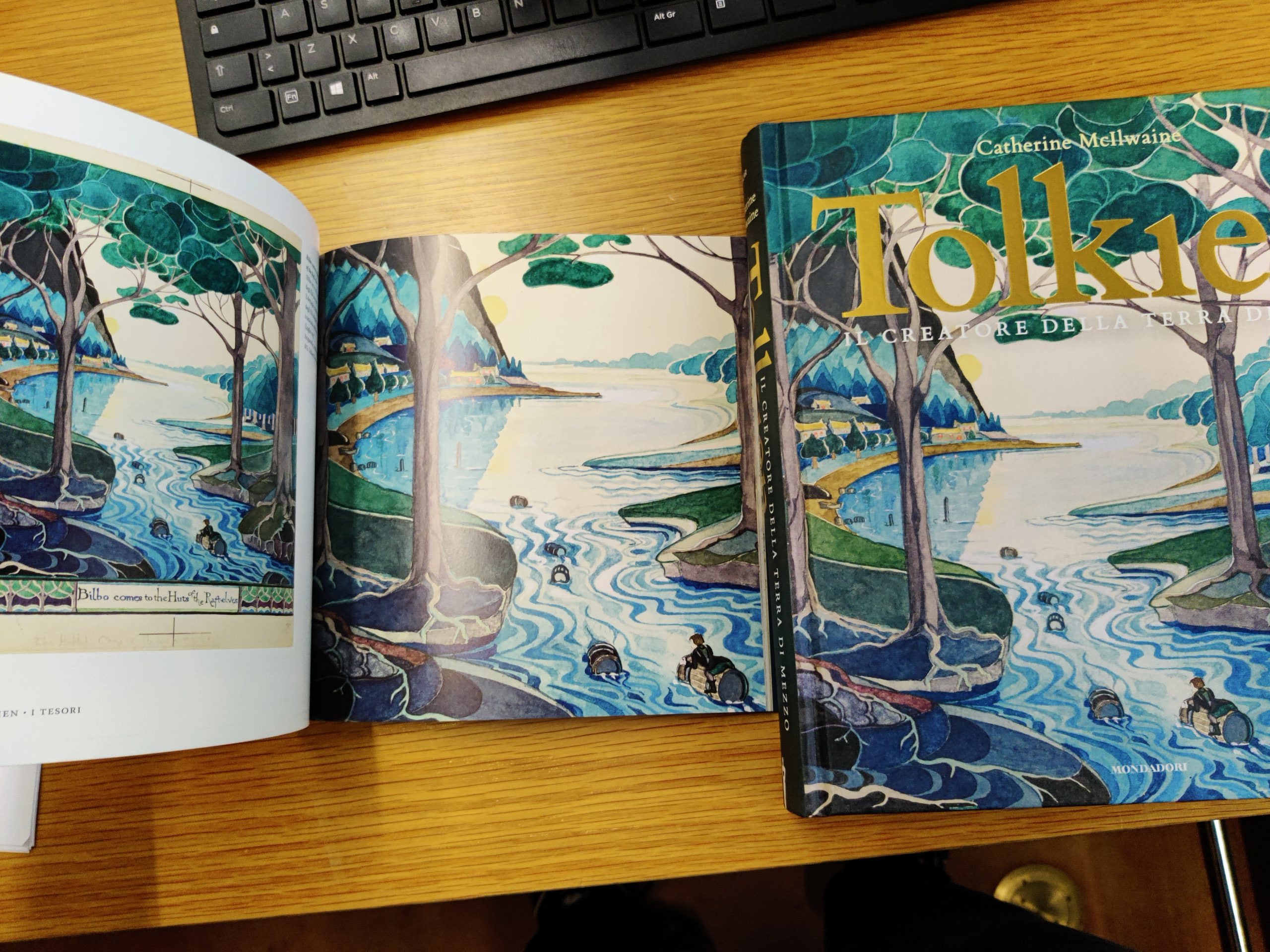 Il corpus del catalogo – preceduto da una sequenza di saggi dei maggiori studiosi tolkieniani – è un caleidoscopio di carteggi, ritratti fotografici color seppia, disegni a motivi “morrisiani”, acquerelli coloratissimi, mappe e oggetti. Al netto di ogni tentazione feticistica, il volume è un viaggio nel percorso creativo di un uomo che ha nutrito la propria fantasia incessantemente, esprimendosi non solo attraverso l’arte narrativa e la saggistica, ma anche il disegno, la poesia, la pittura, la calligrafia e la cartografia. Queste pagine ci restituiscono l’immagine di uno studioso e artista poliedrico, a tutto tondo, in costante dialogo con le proprie suggestioni infantili, capace al tempo stesso di svilupparle e traghettarle nel racconto adulto, fino a fare collassare la fiaba nel romanzo epico e nell’ucronia fantastica. Sfogliando queste pagine si respirano anche le difficoltà del narratore, trasmesse attraverso la materialità del vivere quotidiano, o la necessità di scrivere e riscrivere, abbozzare, scarabocchiare e immaginare con penna o pennello, prima di riuscire a creare un mondo tanto vivido da sembrare reale e far nascere la voglia di percorrerne i sentieri. Senza dubbio Tolkien ci è riuscito. È per questo che – volente o nolente – viene celebrato.