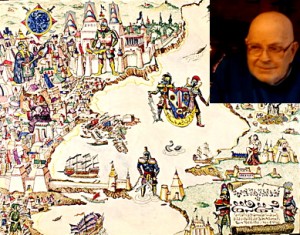 Barker e la mappa di Empire of the Petal ThroneDungeons & Dragons e tutto il suo filone (Advanced D&D, con successive versioni) divenne lo standard dei giochi di ruolo di ambientazione fantasy e ancora nel 2004 costituiva oltre il 50% del mercato dei giochi di ruolo venduti. Mentre stava accadendo tutto questo, c’era un gioco che uscito in sordina, che non raggiunse mai il successo economico, ma ebbe delle importanti ripercussioni sul settore dei giochi. Si chiamava Empire of the Petal Throne (1975), e fu creato da M.A.R. Barker. Professore di Urdu (lingua del Pakistan) e Studi dell’Asia meridionale, Barker ha molte affinità con Tolkien, sia nell’opera che nella vita. Fin dalla tenera età, Barker era ossessionato da due cose: la linguistica e un mondo fantasy da lui creato che si chiamava Tekumel, e questi suoi interessi crebbero in complessità insieme a lui. Barker continuò a studiare linguistica al college, curando anche i più piccoli aspetti al suo mondo, tra cui un linguaggio completo per il paese principale, Tsolyanu. Petal Throne era tutto quello che D&D non era mai stato. Non c’erano descrizioni vaghe o suggerimenti presi in prestito dal medioevo: il mondo immaginario era descritto fin nei minimi dettagli, e si trovava nel libro delle regole. Dei, religioni, rituali, governi, mode, costumi, abitudini e, soprattutto le lingue, diverse per ogni paese del pianeta. L’ispirazione non era il Medievo europeo. Barker utilizzò le sue esperienze in India e in Asia per creare culture incredibilmente selvagge e totalmente estranee ai giocatori di ruolo medi americani.