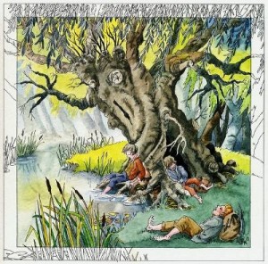 E tuttavia permane una sottile suggestione nel leggere del sussurro melodioso con cui il Vecchio Uomo Salice incanta Frodo, Sam, Merry e Pipino, cantando “parole fresche, che parlavano d’acqua e di sonno”, così come del sibilo rabbioso che emettono le sue foglie quando Frodo e Sam cercano di dargli fuoco, scatenando “fremiti di
