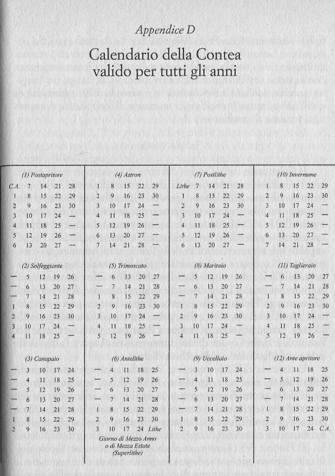 «Nelle mie note e nella narrazione ho adoperato i nomi moderni sia dei giorni che dei mesi, benché naturalmente né gli Eldar né i Dùnedain né gli Hobbit li utilizzassero. Mi è parso indispensabile tradurre i nomi dall’Ovestron, per evitare confusioni, tanto più che le implicazioni stagionali dei nostri nomi sono più o meno simili a quelle della Contea».