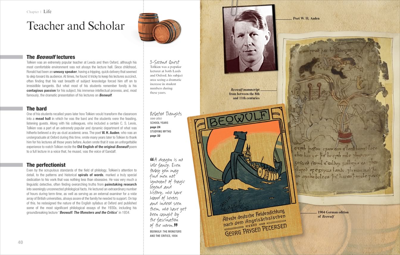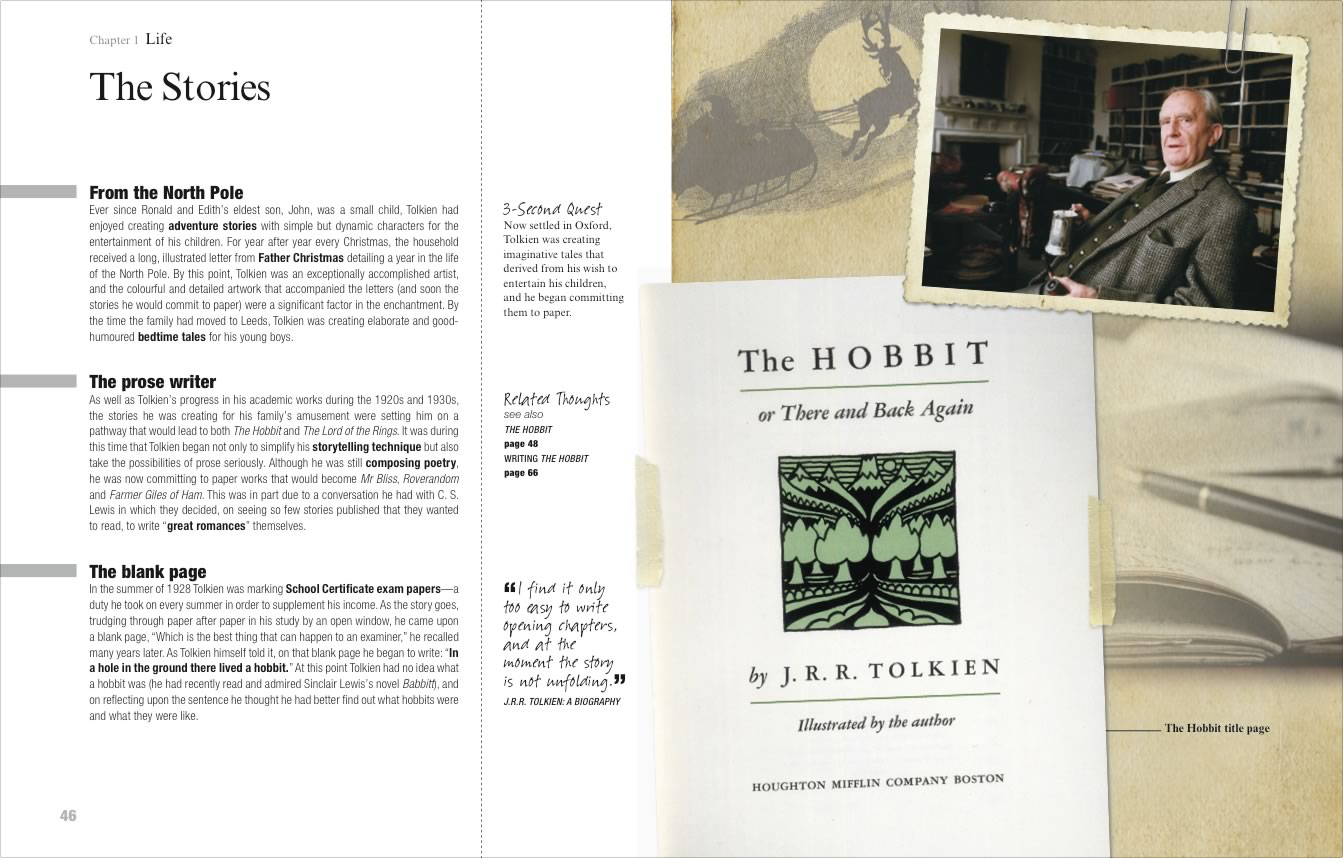 Ma come nasce l’idea di Tolkien in 3 minuti per Raymond? Tutto parte dalla lettura della biografia di Lewis scritta da Wilson e da una conversazione con il proprio editore: «Ebbi poi la fortuna di incontrare un amico che mi portò al Magdelene College, così da poter studiare meglio il mondo di Tolkien anche al di fuori dalle proprie creazioni: è stato un processo lungo, ma mi ha portato soddisfazioni. L’obiettivo, insomma, era quello di dare a tutti la possibilità di accedere a questo mondo in maniera rapida. Ho suddiviso il libro in tre parti: la vita, il lavoro e l’influenza che ha avuto sul mondo. Ogni parte ha dei sottocapitoli che sono facilmente leggibili in tre minuti, perché le informazioni sono concentrate e facili da digerire. Ci sono moltissimi libri che raccontano la storia dell’autore, ma nessuno in questo modo. Per me è stato molto divertente». L’opera di Raymond però non è soltanto una biografia, come vuole sottolineare lo scrittore stesso: tutto inizia con l’analizzare il modello culturale che ha offerto Tolkien e la terza parte dell’estratto, che riguarda l’influenza avuta nel mondo letterario, è sicuramente il punto da cui partire per avere un quadro generale dell’esperienza tolkeniana. Le pillole riescono a offrire anche dei momenti di curiosità circa la vita dell’autore inglese, ricercando elementi particolari e che faranno sicuramente piacere ai fan, fino a oggi rimasti vergini da questi aspetti. «La speranza è che i fan possano apprezzare il mio lavoro – continua Raymond nella stessa intervista – e che possano appassionarsi alla storia di Tolkien: sto racconando quello che tutti sappiamo, ma scavando più nel profondo. Andando alla ricerca del suo passato ho avuto modo di scoprire cose interessanti e anche inaspettate, che ho deciso di mettere al servizio di tutti. Perché comprare questo libro? Perché è un pezzo da collezione e anche perché è una visione divertente, ma studiata, della vita dell’autore». Raymond, per chiudere, parla anche de Lo Hobbit: Un viaggio inaspettato, il primo capitolo della nuova trilogia di Peter Jackson, al cinema dallo scorso dicembre: «L’ho visto e mi è piaciuto molto. Penso che sia il miglior film di Jackson al momento. Con Il Signore degli Anelli fece un lavoro sicuramente importante, ma qui ho trovato più feeling con l’opera e pare abbia fatto un lavoro migliore di quanto fece Tolkien, che con la sua seconda opera superò la prima. Sarà un successo migliore perché parla di un’avventura e il cinema di oggi vuole questo».