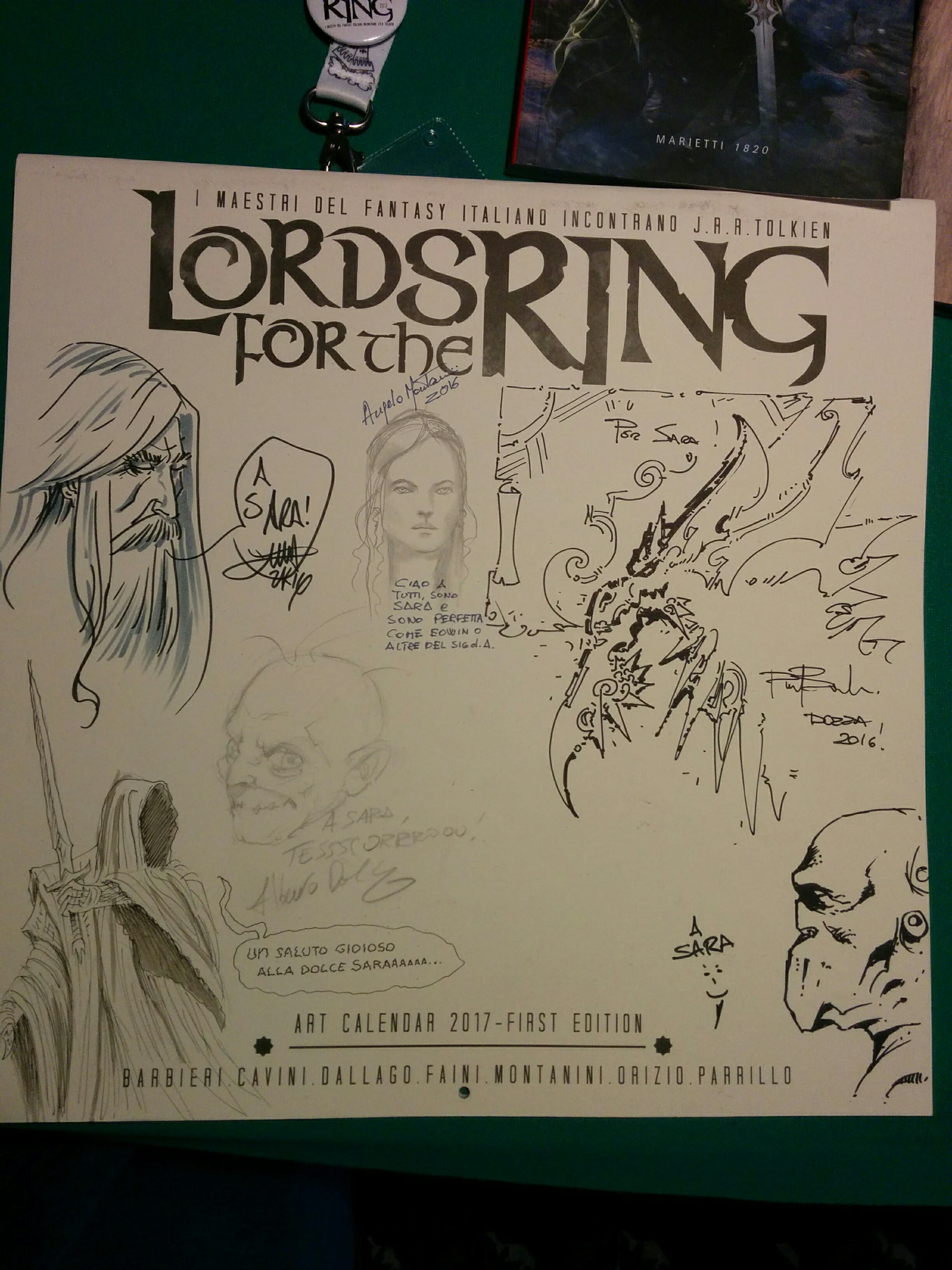 che poi per cinque giorni hanno accolto allo stand dell’AIST gli appassionati per firmare autografi, fare dediche e realizzare disegni. Tre seminari e due workshop esauriti in ogni ordine e grado, circa 500 copie vendute in soli cinque giorni e la tiratura esaurita in meno di due mesi. E ancora una mostra che dopo Lucca Comics and Games, ha girovagato per l’Italia, passando per il WOW – Il museo del fumetto di Milano, e il Salone Internazionale del Libro di Torino. Tutto questo è il calendario AIST 2017 “Lords for the Ring” – I Maestri del fantasy italiano incontrano Tolkien”, che ha visto protagonisti Paolo Barbieri, Ivan Cavini, Alberto Dal Lago, Edvige Faini, Angelo Montanini, Dany Orizio e Lucio Parrillo. Un piccolo fenomeno che ora sta per tornare.